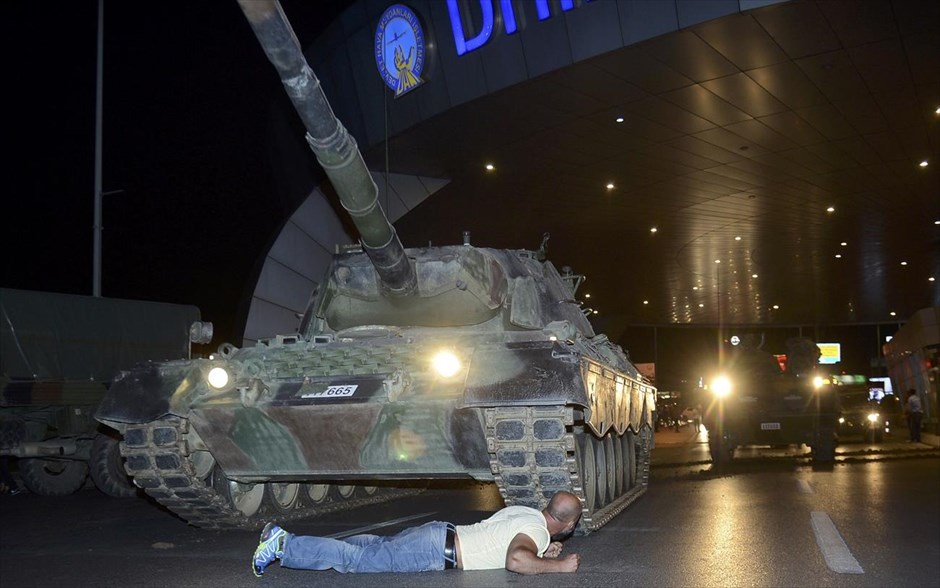 Άντρας ξαπλώνει μπροστά σε τανκ έξω από το αεροδρόμιο Ατατούρκ