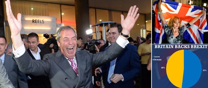Μετά από ολονύχτιο θρίλερ και συνεχείς ανατροπές, τα αποτελέσματα δείχνουν οριστική επικράτηση του Brexit καθώς σύμφωνα με τα επίσημα αποτελέσματα οι Βρετανοί ψήφισαν στο πλέον κρίσιμο δημοψήφισμα της ιστορίας τους, την αποχώρηση από την Ευρωπαϊκή Ένωση.