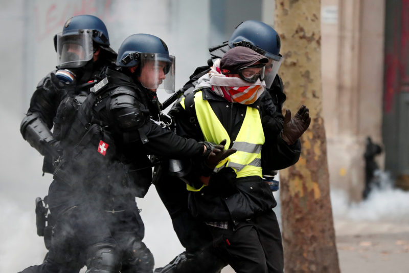 Σκηνικό «πολέμου» επικράτησε το Σάββατο στη Γαλλία, στην τέταρτη κατά σειρά ημέρα των διαδηλώσεων των «κίτρινων γιλέκων». Στο Παρίσι, όπως και σε πολλές περιοχές της επαρχίας, ξέσπασαν βίαιες συγκρούσεις ανάμεσα στους διαδηλωτές και τους αστυνομικούς, που είχαν ως αποτέλεσμα εκατοντάδες άνθρωποι να τραυματιστούν και χιλιάδες να προσαχθούν.