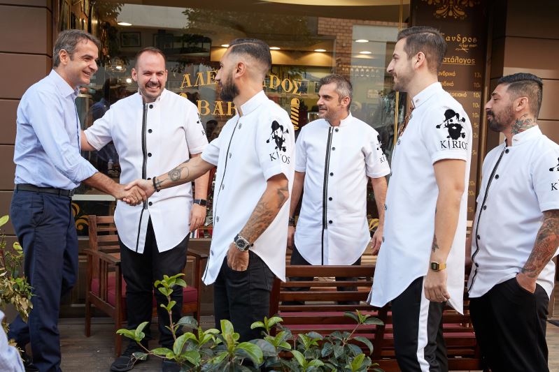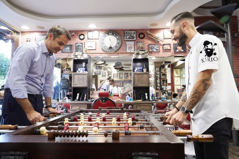 Η βόλτα ολοκληρώθηκε με ένα γρήγορο καφέ στην πλατεία Μεταμορφώσεως. Το αστειότερο όμως συνέβη σε ένα κουρείο της περιοχής. Ο κ. Μητσοτάκης ρώτησε αστειευόμενος το νεαρό κουρέα αν χρεώνει το ίδιο κάποιον που έχει πολλά μαλλιά με κάποιον που δεν έχει. «Το ίδιο θα χρέωνες εμένα, με τον Χατζηδάκη;» τον ρώτησε. Και ο κουρέας τού απάντησε: «Εσύ πληρώνεις ακόμη φουλ, ο άλλος είναι μερεμέτι»