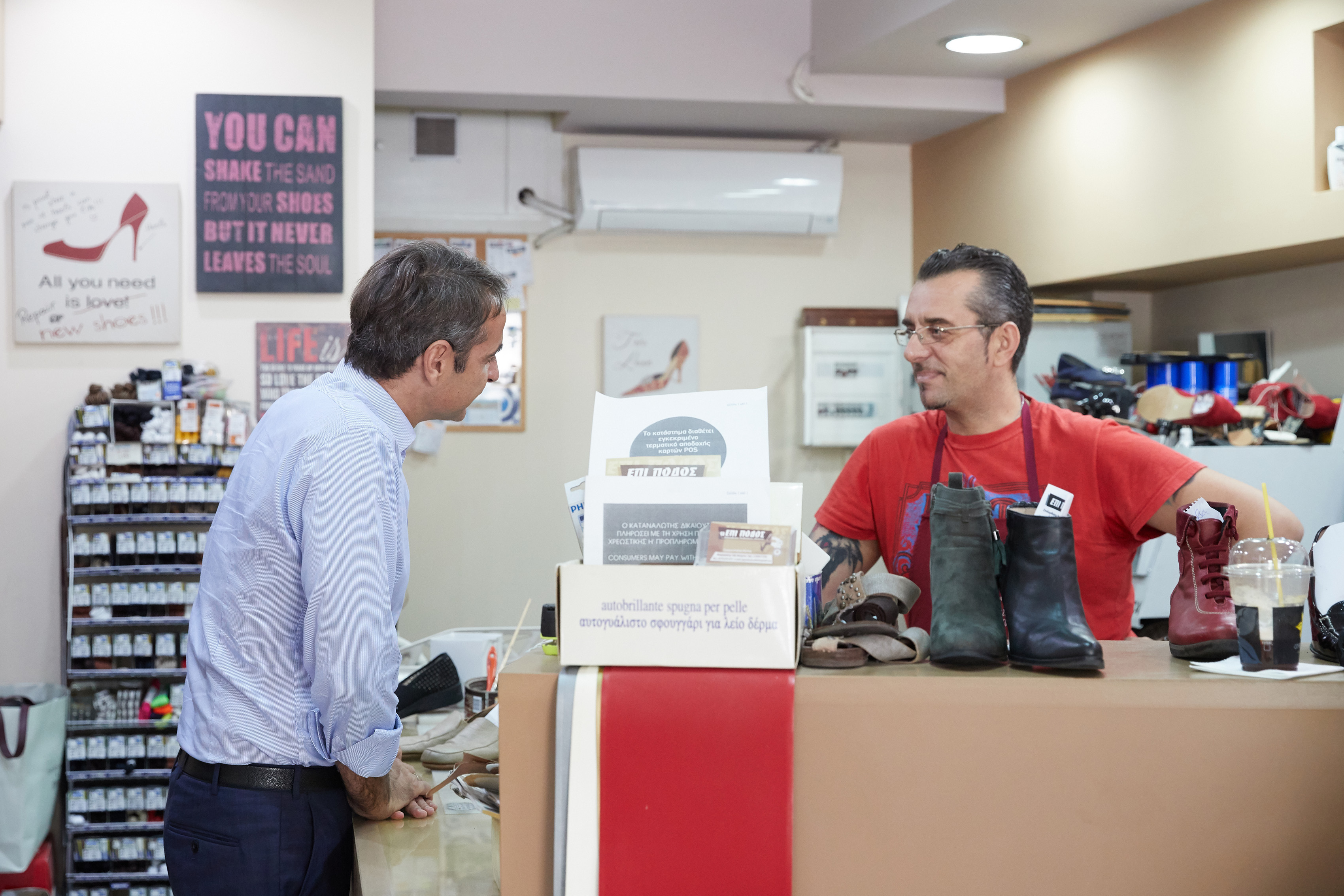 Συζήτησαν μαζί του προβλήματα της καθημερινότητάς τους και του ευχήθηκαν καλή επιτυχία. Ένας καταστηματάρχης μάλιστα, γνωρίζοντας την αγάπη του κ. Μητσοτάκη για τον αθλητισμό και ειδικά την ποδηλασία, του πρότεινε ωραίες ποδηλατικές διαδρομές στην Αττική, με τον Πρόεδρο της Νέας Δημοκρατίας να δείχνει ιδιαίτερο ενδιαφέρον.