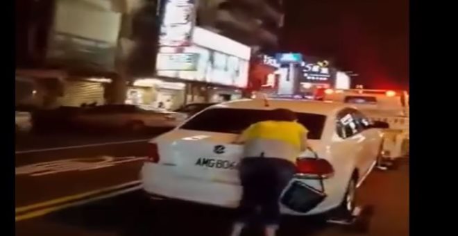 Η γυναίκα είχε παρκάρει παράνομα το αυτοκίνητό της, και στη συνέχεια προσπάθησε να σταματήσει τη ρυμούλκηση από την Τροχαία της περιοχής με το να κρέμεται από το πίσω μέρος του αυτοκινήτου για αρκετή ώρα, τη στιγμή που το έσερνε ο γερανός.