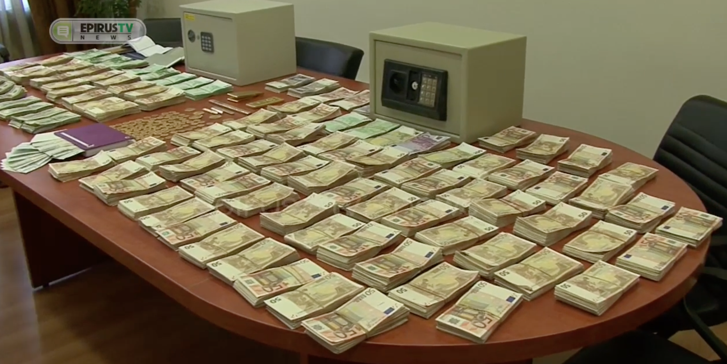 - δύο μεταλλικά χρηματοκιβώτια κρυμμένα κάτω από ανενεργό ανελκυστήρα, που περιείχαν το χρηματικό ποσό των 605.000 ευρώ, 8.760 λίρες Αγγλίας σε χαρτονομίσματα και 66.022 δολάρια ΗΠΑ.