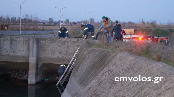 Σύμφωνα με την ιστοσελίδα emvolos.gr ένας ερασιτέχνης ψαράς που βρισκόταν στο σημείο, εντόπισε έναν λύκο εγκλωβισμένο στα νερά του αρδευτικού καναλιού και κάλεσε σε βοήθεια.