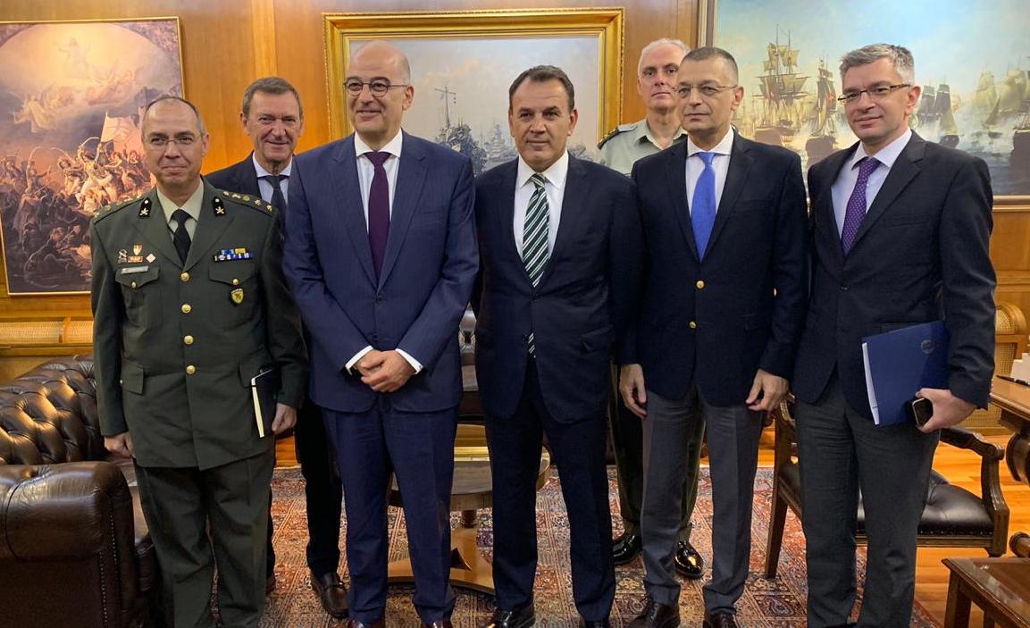 Στη συνάντηση συμμετείχε ο υφυπουργός Εθνικής Άμυνας, Αλκιβιάδης Στεφανής. Στο πλαίσιο της συντάντησης ο υπουργός Εξωτερικών χάρισε στο υπουργείο Άμυνας μια αφίσα του ελληνικού στρατού όταν μπήκε στο Αργυρόκαστρο το 1940 κατά τον ελληνο-ιταλικό πόλεμο.