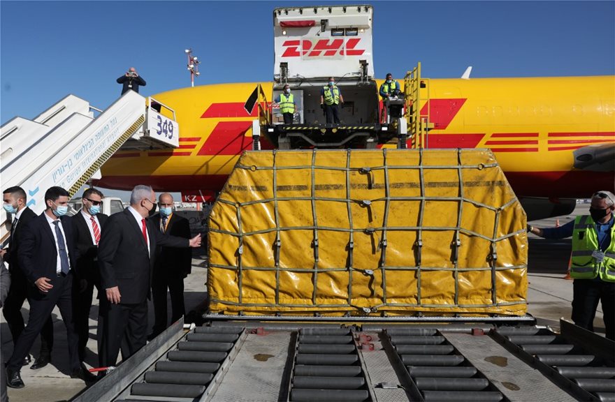 Ένα αεροπλάνο cargo προσγειώθηκε στο αεροδρόμιο Μπεν Γκουριόν του Τελ Αβίβ, μεταφέροντας πάνω από 100.000 δόσεις εμβολίων της Pfizer και προχωρώντας προς το επόμενο στάδιο, αυτό της μεταφοράς και αποθήκευσης.