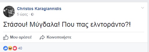 Σε ανάρτηση του στο Facebook ο βουλευτής Δράμας αναφέρει: Στάσου! Μύγδαλα! Που πας ελντοράντο?!