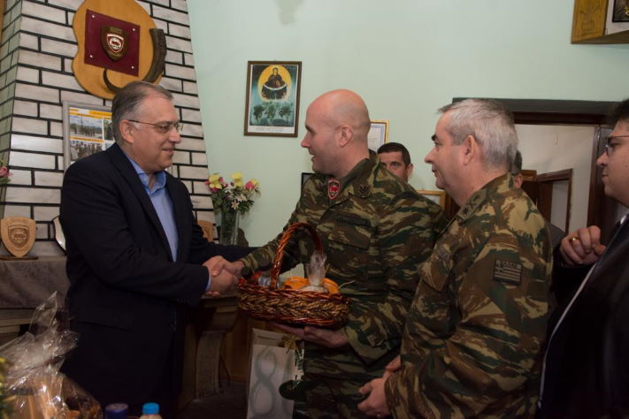 Οι στρατιώτες που τον υποδέχθηκαν έψαλλαν τα κάλαντα με συνοδεία παραδοσιακής μουσικής.