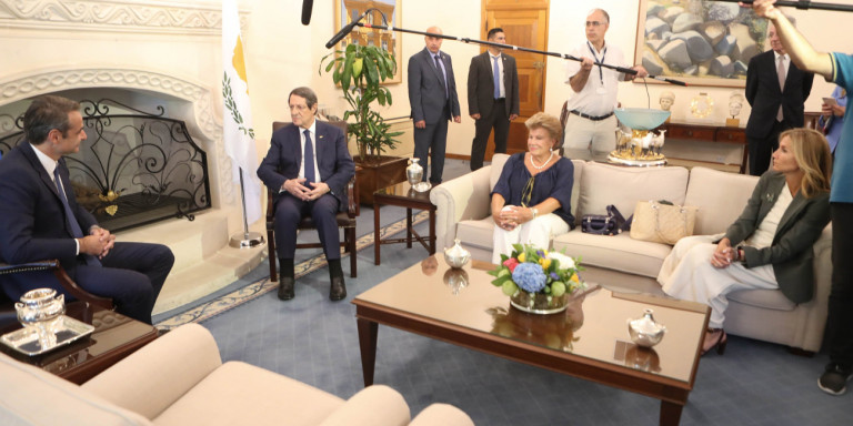 Καλωσορίζοντας τον Έλληνα πρωθυπουργό ο Πρόεδρος Αναστασιάδης ανέφερε ότι η επίσκεψη του κ. Μητσοτάκη δεν συμβολίζει μόνο τους στενούς δεσμούς μεταξύ των δύο χωρών, αλλά και τη σχέση του Κυριάκου Μητσοτάκη με την Κύπρο. Παράλληλα, ο Πρόεδρος Αναστασιάδης σημείωσε πως Κύπρος και Ελλάδα έχουν ενώπιόν του προκλήσεις «τις οποίες από κοινού θα τις αντιμετωπίσουμε, με τους γείτονες μας και με τους εταίρους μας».