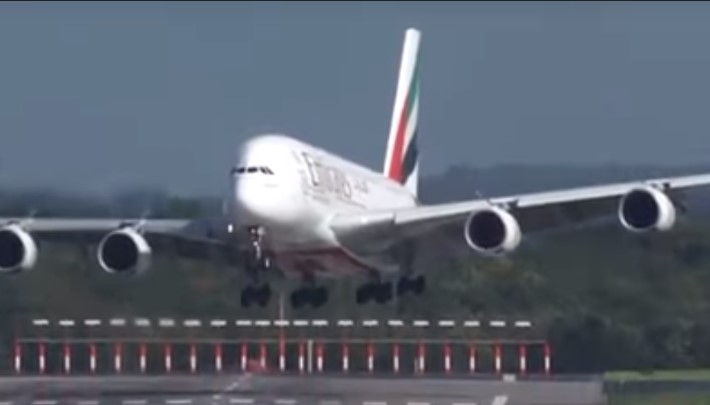 Μία μάλλον τρομακτική προσγείωση εν μέσω θυελλωδών ανέμων πραγματοποίησε στο Ντύσσελντορφ της Γερμανίας ένα Airbus A380 της Emirates.