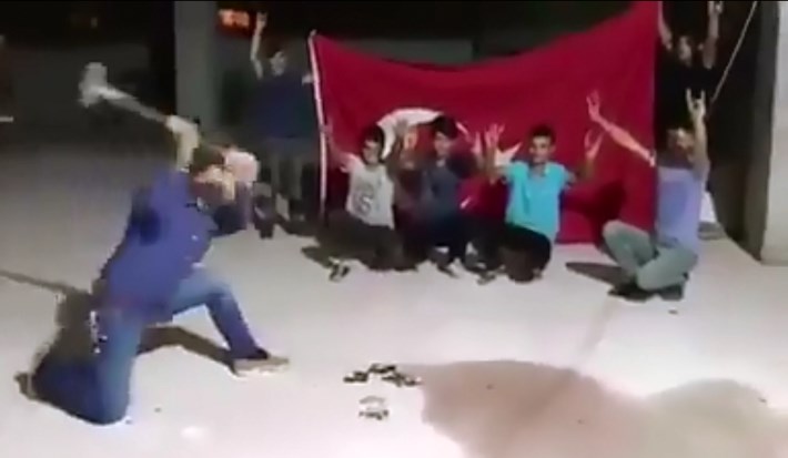 Angry Turkish man smashing iPhones with sledgehammer to protest of #USA & Trump ! pic.twitter.com/JjPqf9JI9x