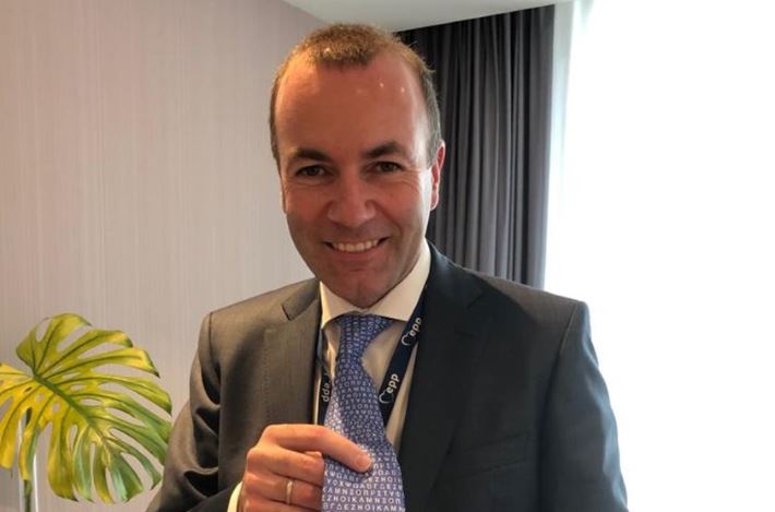 Ο Βέμπερ με ελληνική γραβάτα στα γραφεία του ΕΛΚ