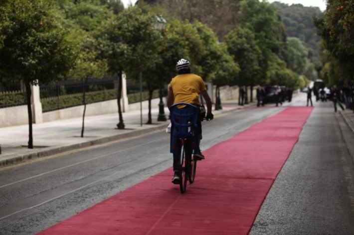 Το κατακόκκινο χαλί είχε ξεδιπλωθεί και καθαριστεί για να βαδίσουν οι δυο πρόεδροι. Τότε εμφανίστηκε ο ποδηλάτης που από όλες τις βόλτες του στην πρωτεύουσα βρήκε επιτέλους έναν… της προκοπής ποδηλατόδρομο