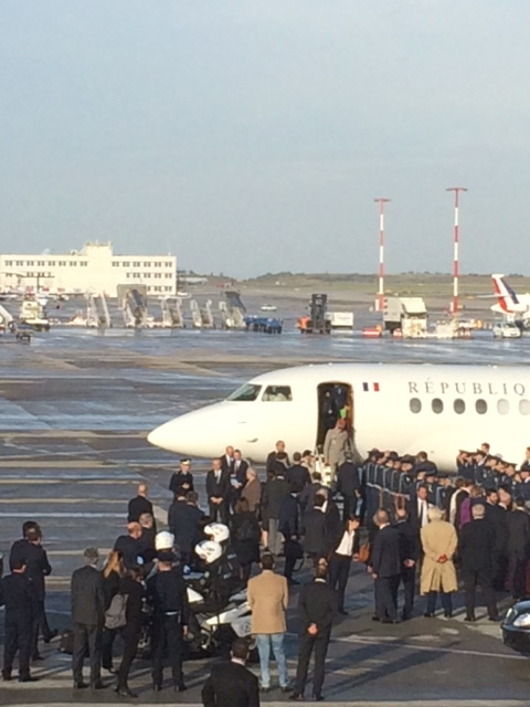 Το αεροσκάφος του Γάλλου προέδρου προσγειώθηκε στο «Ελευθέριος Βενιζέλος» και από λεπτό σε λεπτό αναμένεται να αποβιβαστεί ο Φρανσουά Ολάντ. Εκεί βρίσκεται και ο πρωθυπουργός, Αλέξης Τσίπρας.
