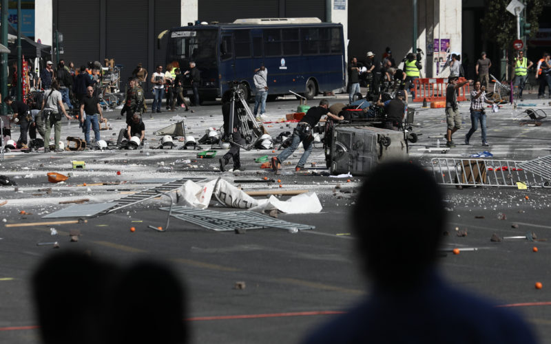 Οι σκηνές που γυρίζονται από το πρωί περιλαμβάνουν «μάχες», μεταξύ διαδηλωτών και αστυνομικών στους δρόμους γύρω από Σύνταγμα. Αρκετοί ήταν εκείνοι που περνώντας από το Σύνταγμα σταμάτησαν για να παρακολουθήσουν, πίσω από τα προστατευτικά κιγκλιδώματα, τα γυρίσματα.