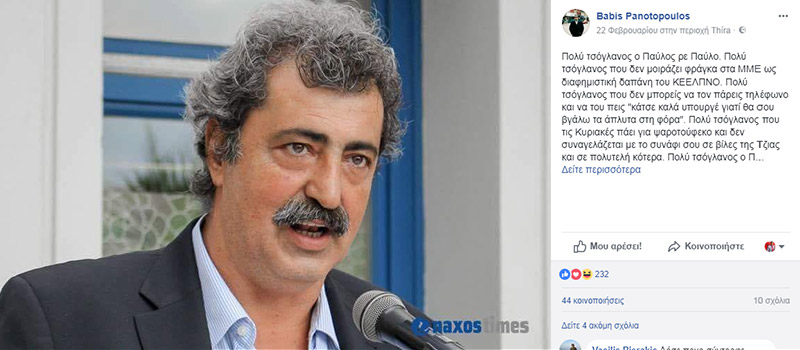 Δείτε, εκτός από τις φωτογραφίες του κ. Πανοτόπουλου, και το πώς απάντησε στο Facebook, στις αιτιάσεις για τον ορισμό του στο γενικό νοσοκομείο Σαντορίνης: