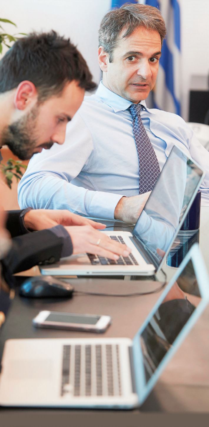 Πολλοί είναι, µάλιστα, αυτοί που τον χαρακτηρίζουν ως τον «εγκέφαλο» της δραστηριότητας των µέσων κοινωνικής δικτύωσής του. «Η ευκαιρία µού δόθηκε πριν από περίπου έναν χρόνο. Ενα µεσηµέρι χτυπάει το τηλέφωνό µου, το σηκώνω και ακούω από την άλλη άκρη της γραµµής τον Κυριάκο Μητσοτάκη. Είχε βρει τον αριθµό µου µέσω του site στο οποίο αρθρογραφούσα.