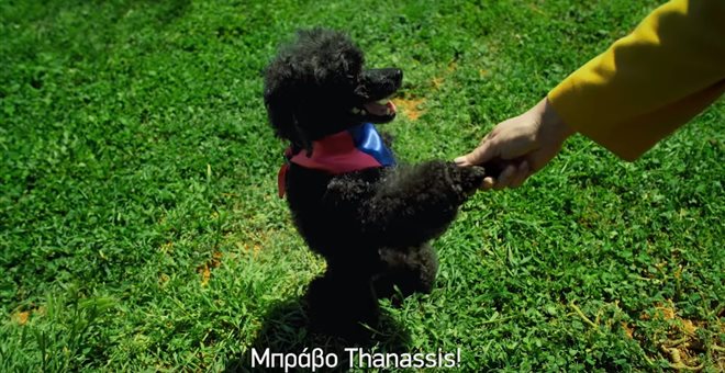 Στο βίντεο η Άνγκελα Μέρκελ δίνει εντολές στον Thanassis, έχοντάς τον κυριολεκτικά σήκω – σήκω, κάτσε – κάτσε (Τhanassis εδώ! Μπράβο Thanassis! Κάτσε! Σήκω! Φέρε λεφτά! Μπράβο! )
