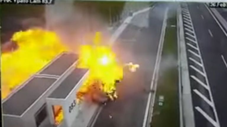 Τότε, ο οδηγός της Porsche «καρφώθηκε» σε σταματημένο όχημα στο πάρκινγκ της εθνικής οδού, με αποτέλεσμα τα δύο αυτοκίνητα να τυλιχθούν στις φλόγες και να χάσουν τη ζωή τους ο ίδιος, ο συνοδηγός του, Ανδρέας Γεωργακόπουλος, και η συνεπιβάτης του σταθμευμένου αυτοκινήτου Αποστολία και ο τριών ετών γιος της, Παύλος.