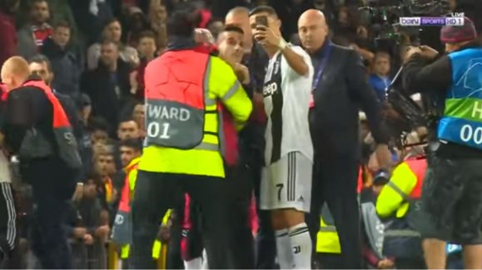 Κι αυτό γιατί, όταν οι δύο άντρες με κουκούλες εισέβαλαν στο γήπεδο, εκείνος όχι μόνο δεν τους αγνόησε, αφήνοντας τους άνδρες τις ασφάλειας να τους «κανονίσουν», αλλά πλησίασε τον έναν, του έσφιξε το χέρι, πήρε το κινητό του, χαμογέλασε πλατιά, και του χάρισε μια selfie που σίγουρα θα του μείνει αξέχαστη.