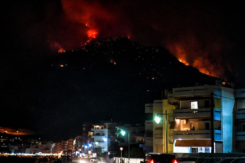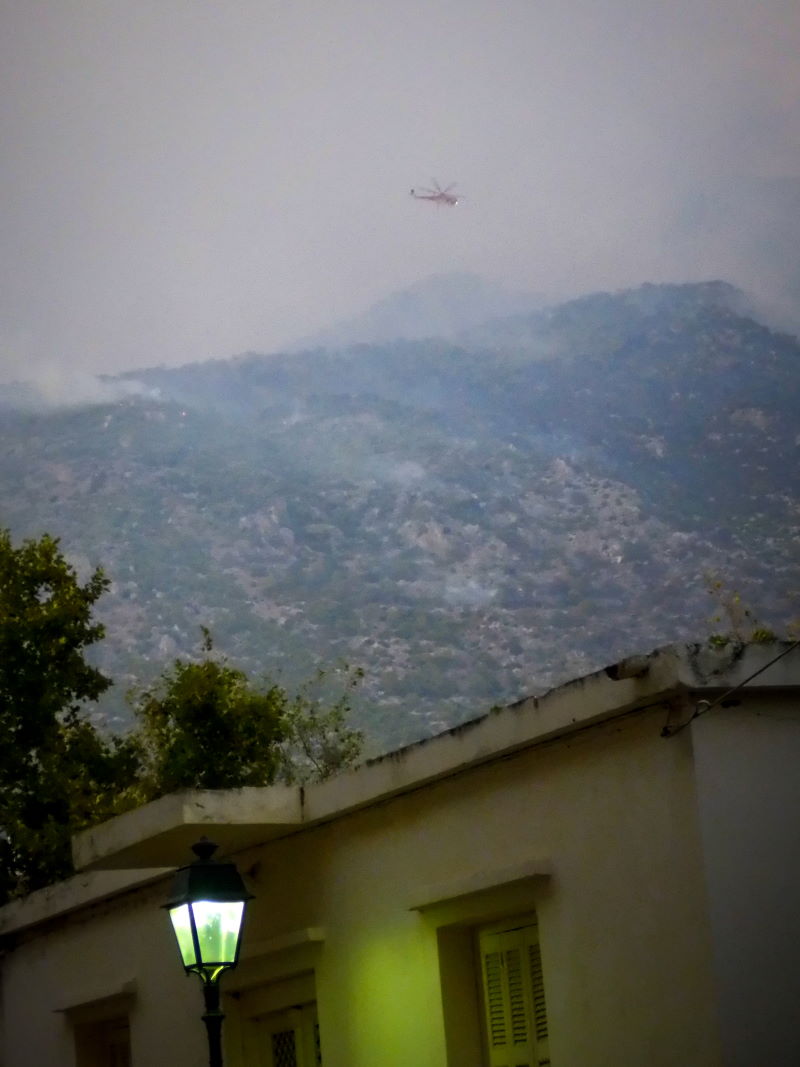 Η νύχτα ήταν πολύ δύσκολη στην περιοχή, καθώς οι τεράστιες φλόγες έκαναν την εικόνα απόκοσμη και οι πυκνοί καπνοί δυσκόλευαν την κατάσταση.