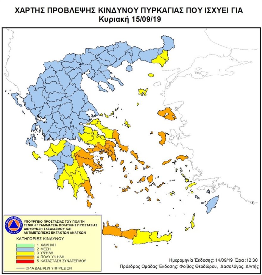 Σε ύψιστο συναγερμό παραμένει και σήμερα η Πυροσβεστική και η Γενική Γραμματεία Πολιτικής Προστασίας καθώς σύμφωνα με τον χάρτη πρόβλεψης κινδύνου πυρκαγιάς έξι περιοχές σε όλη την Ελλάδας βρίσκονται στην κατηγορία 4.