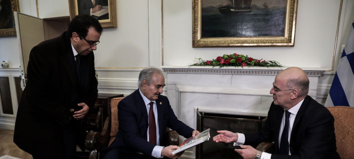 Το βράδυ της Πέμπτης ο στρατάρχης Χαφτάρ είχε την πρώτη του συνάντηση  με τον υπουργό Εξωτερικών Νίκο Δένδιας, ο οποίος του μετέφερε τις ελληνικές θέσεις, τονίζοντας για ακόμη μία φορά πως η συμφωνία με την Τουρκία είναι άκυρη, ενώ πρωταρχικός στόχος είναι πάντα η ειρήνη και η σταθερότητα στην περιοχή της Νοτιοανατολικής Μεσογείου.