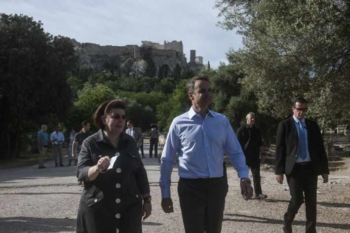 Τον Κυριάκο Μητσοτάκη, που έφτασε πεζός στο σημείο μέσα από το Μοναστηράκι, ξενάγησε η υπουργός Πολιτισμού Λίνα Μενδώνη. Με μάσκες και όλα τα μέτρα που πρότεινε ο ΕΟΔΥ ο Κυριάκος Μητσοτάκης και η υπουργός Πολιτισμού περιηγήθηκαν τον χώρο.