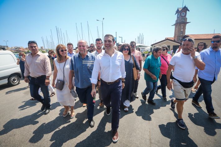 Σε κλίμα πολύ πιο χαλαρό ο πρωθυπουργός έφτασε στο Λαύριο λίγο μετά τις 12 το μεσημέρι συνοδευόμενος από στελέχη και φίλους του κόμματος και στη συνέχεια κατευθύνθηκε σε ψαροταβέρνα της περιοχής.