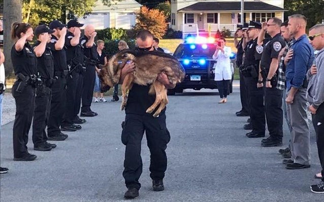 Συγκινητικό ήταν το αντίο Αμερικανών αξιωματικών σε σκύλο της αστυνομίας, ο οποίος έπασχε από επιθετική μορφή καρκίνου του ήπατος.