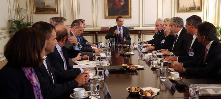 Aπό την πλευρά της κυβέρνησης στη συνάντηση συμμετείχαν επίσης ο Υπουργός Οικονομικών Χρήστος Σταϊκούρας, ο Υπουργός Ανάπτυξης και Επενδύσεων Άδωνις Γεωργιάδης, ο Υπουργός Επικρατείας Γιώργος Γεραπετρίτης, ο Υφυπουργός Οικονομικών, αρμόδιος για το χρηματοπιστωτικό σύστημα, Γιώργος Ζαββός, ο Υφυπουργός παρά τω Πρωθυπουργώ, αρμόδιος για τον Συντονισμό του Κυβερνητικού Έργου, Άκης Σκέρτσος, η Γενική Γραμματέας Συντονισμού Οικονομικών και Αναπτυξιακών Πολιτικών Βίκυ Λοΐζου, ο Γενικός Γραμματέας Συντονισμού Εσωτερικών Πολιτικών Θανάσης Κοντογεώργης, ο Γενικός Γραμματέας Διαχείρισης Ιδιωτικού Χρέους Φώτης Κουρμούσης και ο επικεφαλής του Οικονομικού Γραφείου του Πρωθυπουργού Αλέξης Πατέλης.
