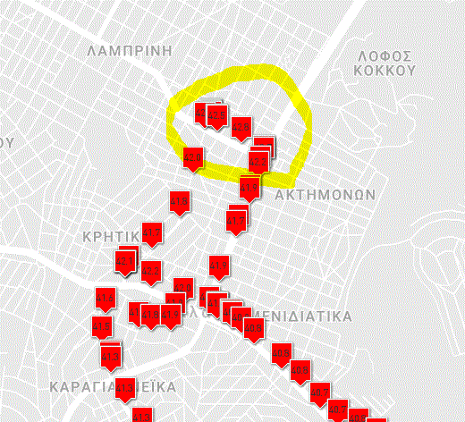 Στην Αθήνα πάντως η υψηλότερη θερμοκρασία την Παρασκευή καταγράφηκε, όπως αποτυπώνεται και στον ακόλουθο χάρτη, στο Γαλάτσι αγγίζοντας τους 43 βαθμούς.