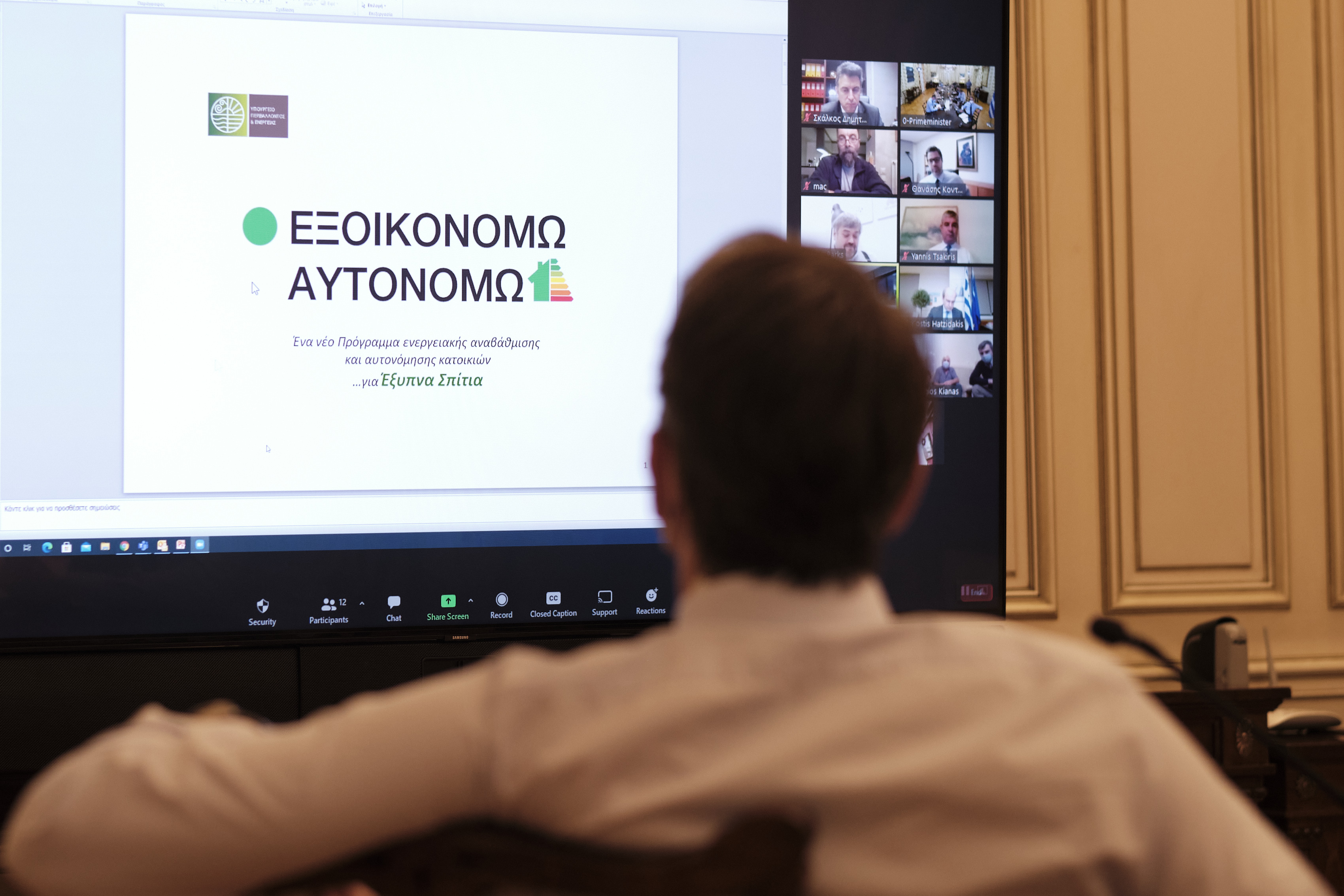 Στη σύσκεψη έλαβαν μέρος, ο Υπουργός Περιβάλλοντος και Ενέργειας Κωστής Χατζηδάκης, ο Υπουργός Ανάπτυξης και Επενδύσεων Άδωνις Γεωργιάδης, ο Υφυπουργός Ανάπτυξης και Επενδύσεων Γιάννης Τσακίρης, η Γενική Γραμματέας Ενέργειας και Ορυκτών Πρώτων Υλών Αλεξάνδρα Σδούκου, ο Γενικός Γραμματέας Δημοσίων Επενδύσεων και ΕΣΠΑ Δημήτρης Σκάλκος, ο Γενικός Γραμματέας Συντονισμού Θανάσης Κοντογεώργης, ο Πρόεδρος του Τμήματος Δυτικής Μακεδονίας στο Τεχνικό Επιμελητήριο Ελλάδας Στέργιος Κιάνας, ο Πρόεδρος του Ελληνικού Ινστιτούτου Παθητικού Κτιρίου Στέφανος Παλλαντζάς και ο Πρόεδρος του Πανελλήνιου Συλλόγου Πιστοποιημένων Ενεργειακών Επιθεωρητών Κώστας Λάσκος.
