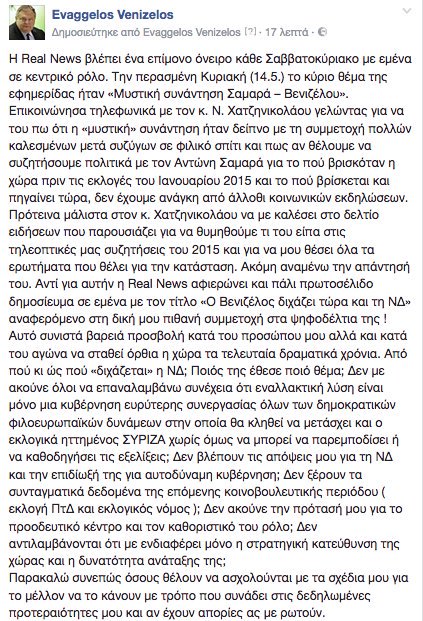 Η ανάρτηση του κ. Βενιζέλου: