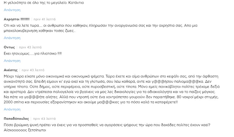 “Μετά από 36 ώρες στο πόδι και μια απερίγραπτη πίεση συνολική και προσωπική, λόγω αυτών που συνέβαλα να γίνουν για να αντιμετωπιστούν πλευρές της τραγωδίας αλλά και τη συνήθη προσωπική επίθεση που δέχθηκα άλλη μια φορά με όρους πρωτοφανούς διαστρέβλωσης, μέσα μου παλεύουν τρία συναισθήματα