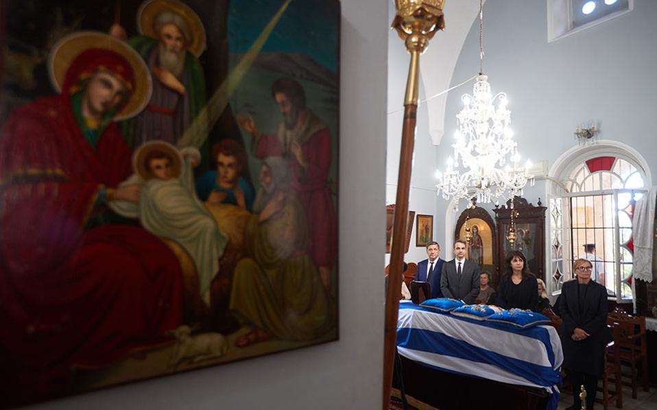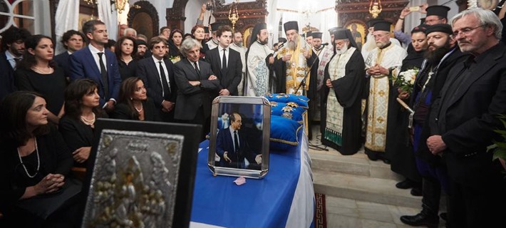 Στο ναό της Αγίας Μαρίας Μαγδαληνής όλα τα μέλη της οικογένειας Μητσοτάκη αποχαιρέτησαν τον Ελληνα πολιτικό, ενώ συγκινητικό ήταν το αντίο της Ντόρας Μπακογιάννη στον πατέρα της. «Σήμερα εδώ δεν είμαστε για να μιλήσουμε για την πολιτική, για όλα εκείνα τα σωστά που είπες και έκανες, αλλά για να σου πούμε το μεγάλο ευχαριστώ και το πικρό αντίο».