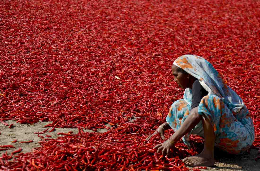 Το μάζεμα της κόκκινης πιπεριάς στην Ινδία