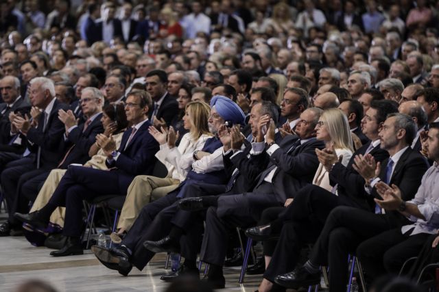 Μάλιστα όπως αποδεικνύεται και από τις φωτογραφίες, οι χειραψίες, τα πηγαδάκια και τα χαμόγελα μεταξύ των στελεχών της ΝΔ δεν έλειψαν πριν και μετά την ομιλία του Κυριάκου Μητσοτάκη.