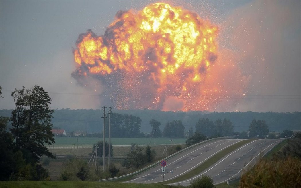 Καπνός και φλόγες υψώνονται πάνω από μία αποθήκη πυρομαχικών στη στρατιωτική βάση της πόλης Καλίνιβκα. Πυρκαγιά έχει ξεσπάσει σε μια πολύ μεγάλη αποθήκη πυρομαχικών στην κεντροδυτική Ουκρανία, με αποτέλεσμα οι αρχές να έχουν ζητήσει το κλείσιμο του εναέριου χώρου σε μια ακτίνα 50 χιλιομέτρων από το σημείο, αλλά και την απομάκρυνση των κατοίκων.
