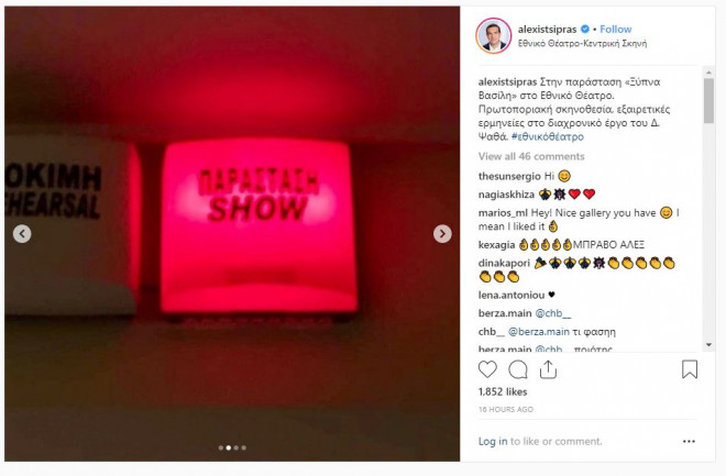 Ο πρωθυπουργός ήταν ιδιαίτερα ευδιάθετος και μάλιστα ανέβασε αρκετές φωτογραφίες, αλλά και instastories, κάνοντας λόγο για «πρωτοποριακή σκηνοθεσία και εξαιρετικές ερμηνείες».