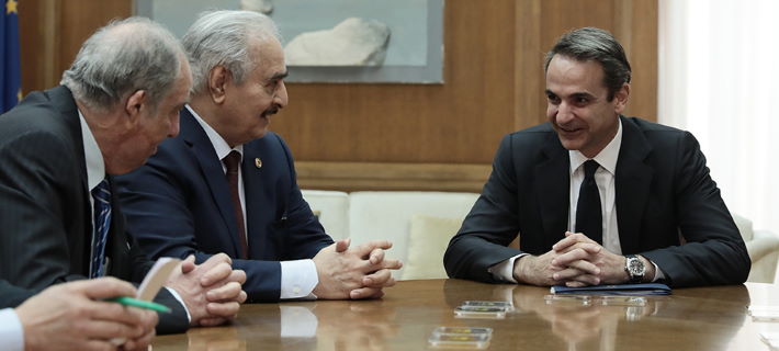 Ο Πρωθυπουργός κ. Κυριάκος Μητσοτάκης δέχθηκε σήμερα στο γραφείο του στη Βουλή τον Αρχηγό του Λιβυκού Εθνικού Στρατού Χαλίφα Χαφτάρ, ο οποίος τον ενημέρωσε για την κατάσταση στην Λιβύη και για τις επιδιώξεις του ενόψει της Διάσκεψης του Βερολίνου.