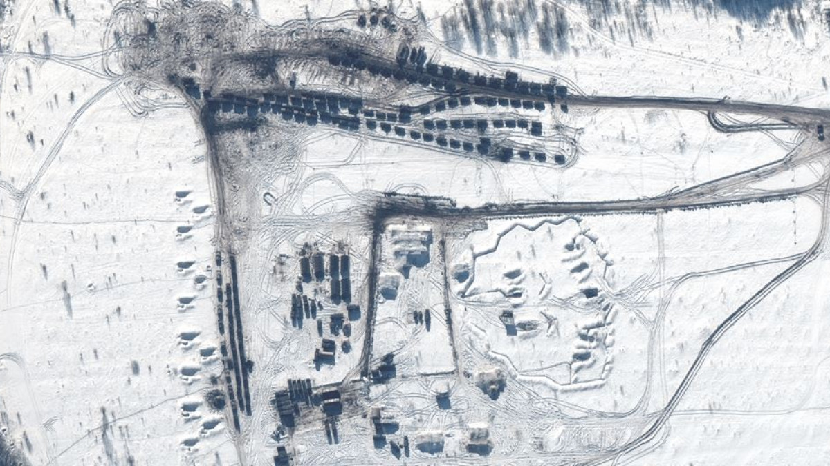Οι εικόνες τραβήχθηκαν στα μέσα του μήνα και δείχνουν την Ουκρανία περικυκλωμένη από τρεις πλευρές στα σύνορα με τη Ρωσία και τη Λευκορωσία.