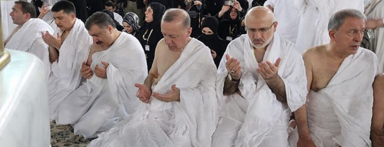Κατά το σύντομο ταξίδι του, ο Τούρκος πρόεδρος πήγε να προσκυνήσει στη Μέκκα – υπό δρακόντεια μέτρα ασφαλείας – φορώντας τον λευκό χιτώνα του προσκυνητή.