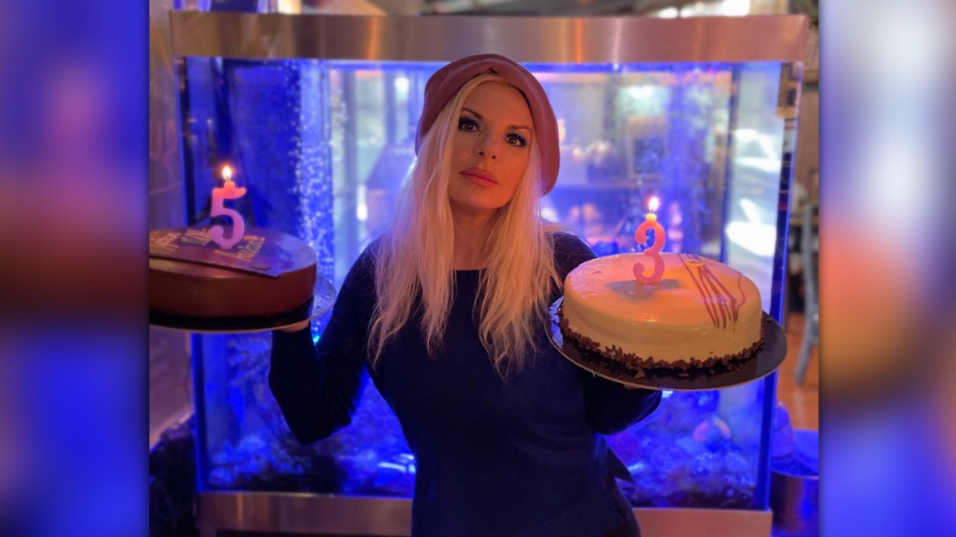 Στη φωτογραφία που δημοσίευσε, η Αννίτα Πάνια κρατά δύο τούρτες με τον αριθμό 5 στη μία και 3 στην άλλη.