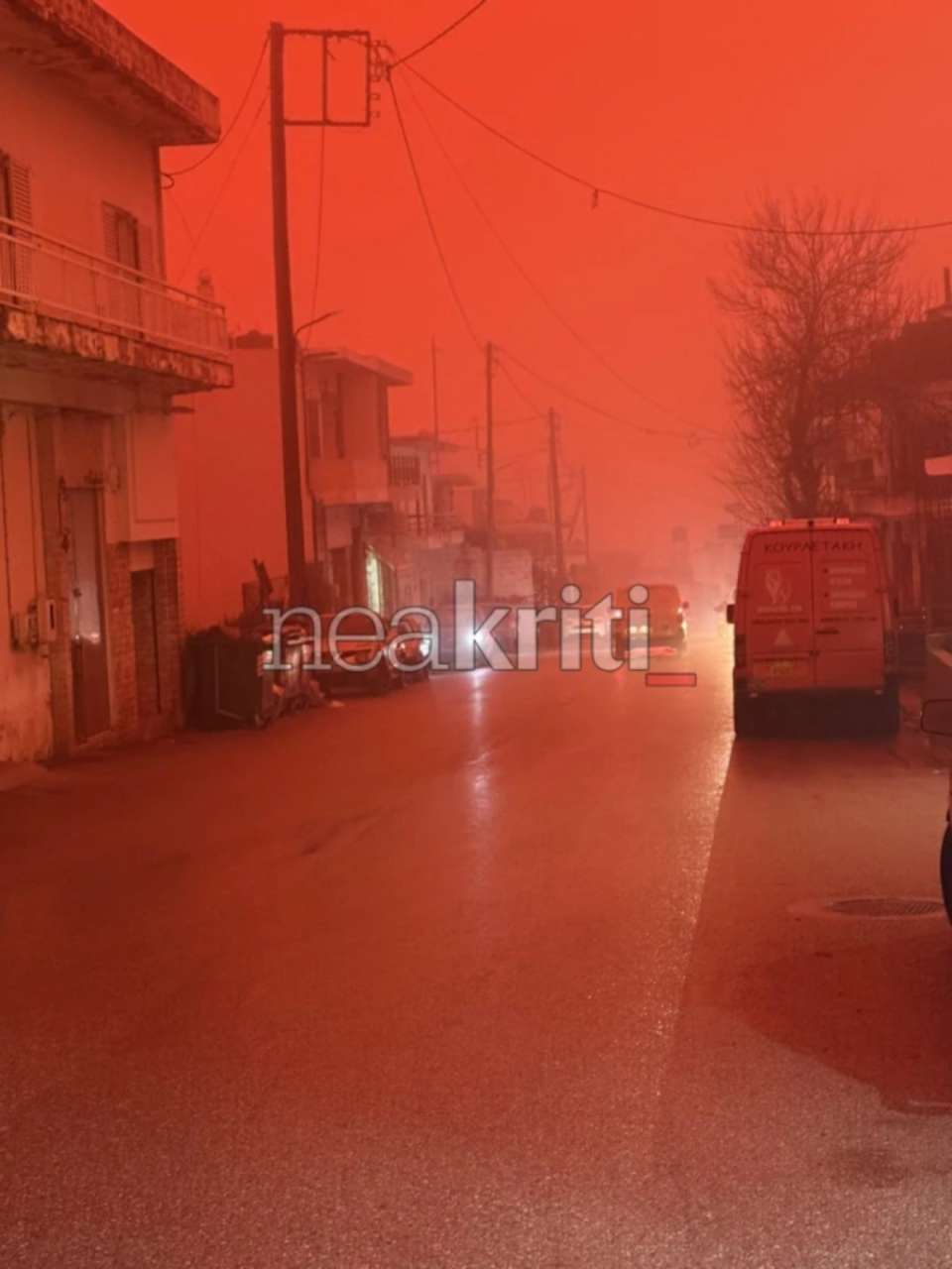 Εκτός από το κίτρινο τοπίο που επικρατεί, η αυξημένη συγκέντρωση αφρικανικής σκόνης κάνει την ατμόσφαιρα αποπνικτική. Όπως αναφέρεται, το φαινόμενο θα αρχίσει να υποχωρεί σταδιακά από το απόγευμα. Η μέρα έγινε νύχτα στην Αγία Βαρβάρα Στην Αγία Βαρβάρα του Δήμου Γόρτυνας η ορατότητα έχει περιοριστεί αισθητά, ενώ ο ουρανός έχει πάρει σκούρες αποχρώσεις, δίνοντας την αίσθηση ότι έχει ήδη δύσει ο ήλιος. Οι εικόνες που δημοσιεύει το neakriti.gr αποτυπώνουν την ένταση του φαινομένου, το οποίο πλήττει ευρύτερα την Κρήτη και συνοδεύεται από ισχυρούς νοτιάδες.
