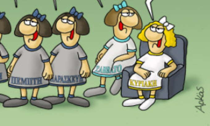 Την παράσταση όμως κλέβει το δηκτικό σχόλιο της Κυριακής, για τους μήνες – μνηστήρες.