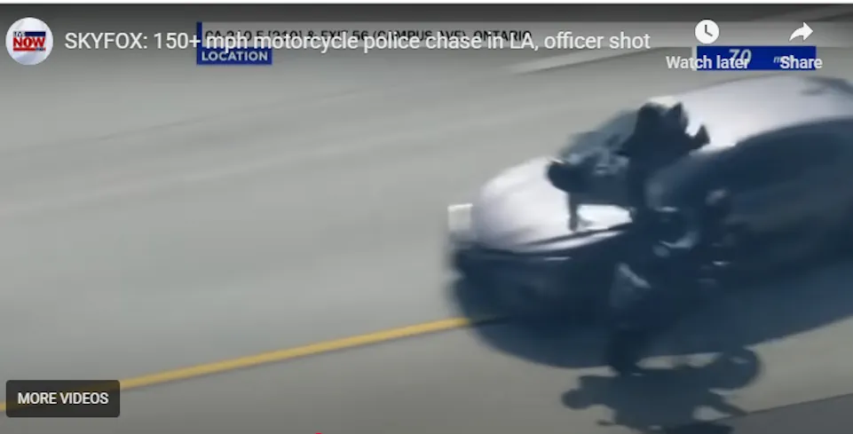 Δραματικό τέλος είχε καταδίωξη που θύμισε ταινία του Χόλιγουντ σε αυτοκινητόδρομο στο Λος Άντζελες, με ένα αυτοκίνητο που οδηγούσε αστυνομικός εκτός υπηρεσίας, να γκρεμίζει αναβάτη μηχανής ο οποίος λίγο νωρίτερα είχε σκοτώσει συνάδελφό του.