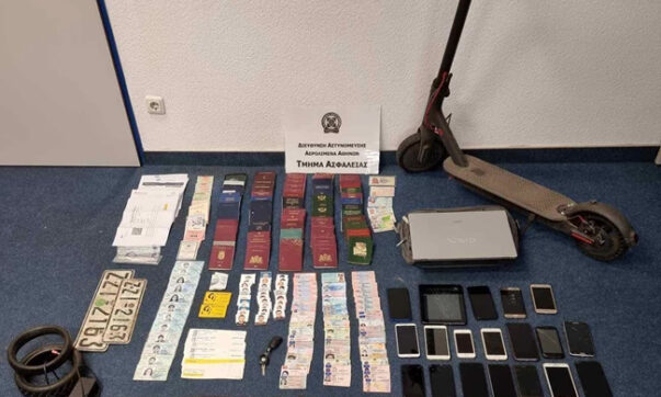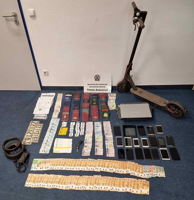 Από τις έρευνες στις οικίες των δραστών, βρέθηκαν μεταξύ άλλων και κατασχέθηκαν, διαβατήρια, ταυτότητες διαφόρων χωρών, πολλά ταξιδιωτικά έγγραφα, άδειες παραμονής, δελτίο αιτήσαντος ασύλου, κάρτες επιβίβασης, φωτογραφίες, μεγάλος αριθμός ηλεκτρονικών συσκευών, 4.200 ευρώ και ένα ηλεκτρικό πατίνι. Οι συλληφθέντες οδηγήθηκαν στον εισαγγελέα Πλημμελειοδικών Αθηνών.