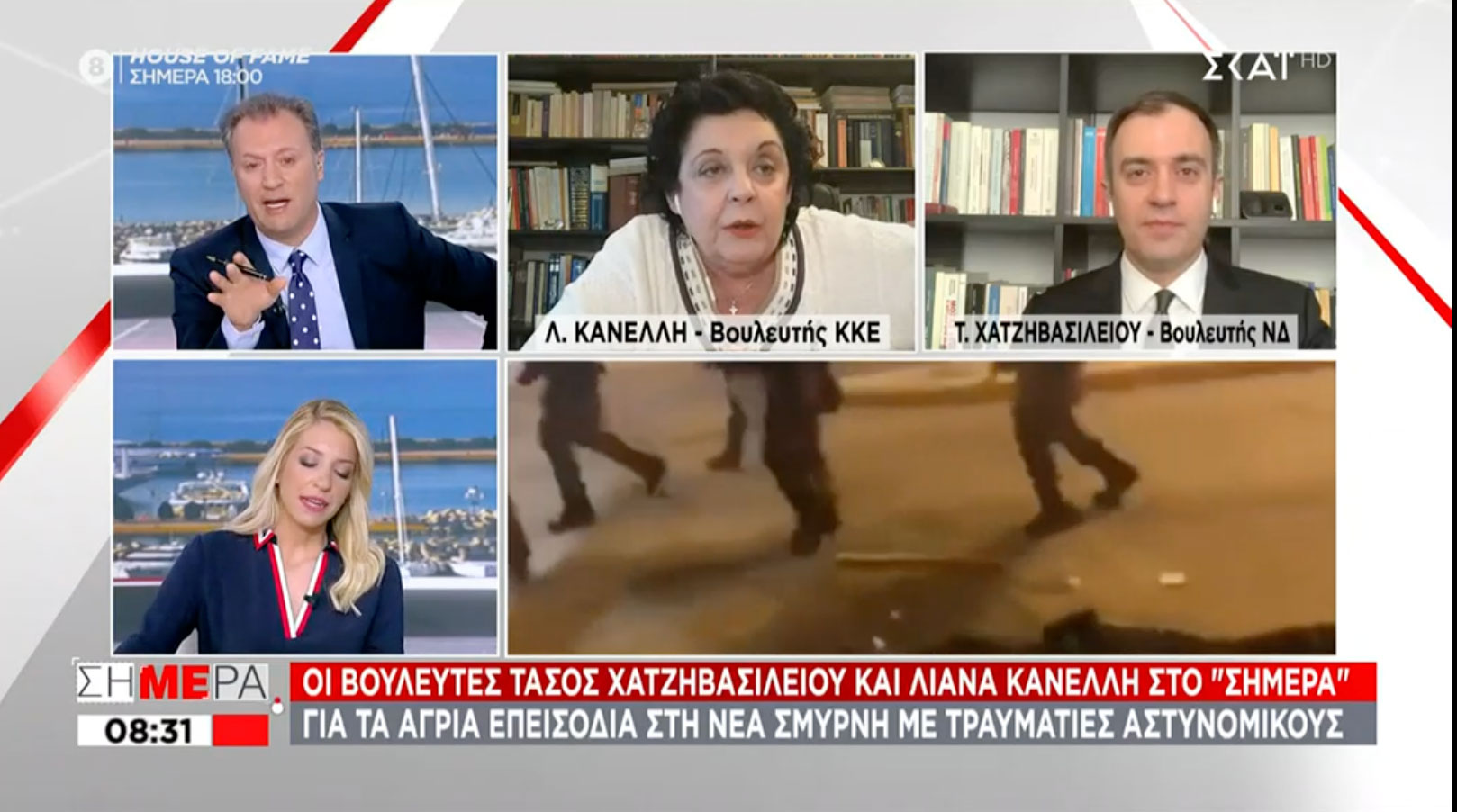 Η Λιάνα Κανέλλη ήταν καλεσμένη στην εκπομπή ΣΗΜΕΡΑ του ΣΚΑΙ, μαζί με τον βουλευτή της Νέας Δημοκρατίας Τάσο Χατζηβασιλείου για να σχολιάσουν τα όσα έγιναν χθες το βράδυ στη Νέα Σμύρνη.