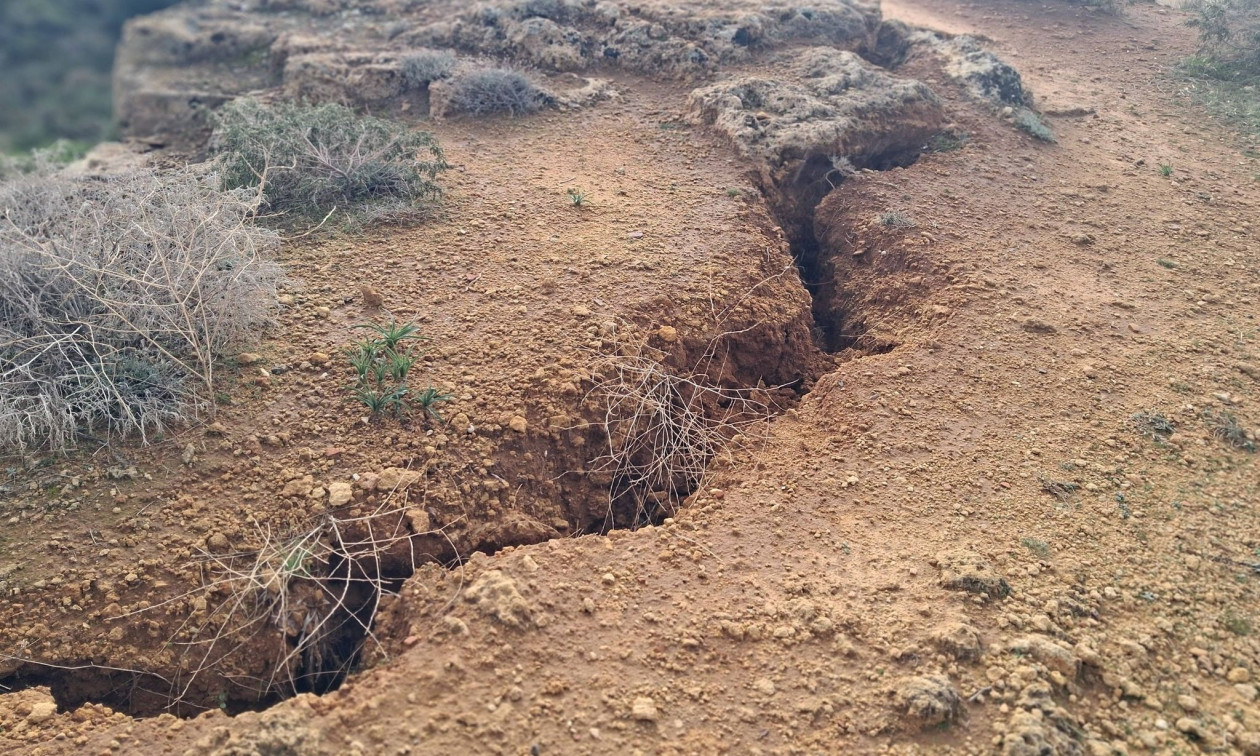 Το ρήγμα, που είναι δεκάδων μέτρων και πιθανότατα προήλθε από καθίζηση του εδάφους εντοπίστηκε τυχαία από διερχόμενους περιπατητές.
